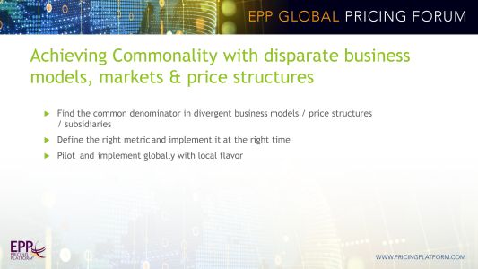 - Find the common denominator in divergent business models/price structures/subsidiaries